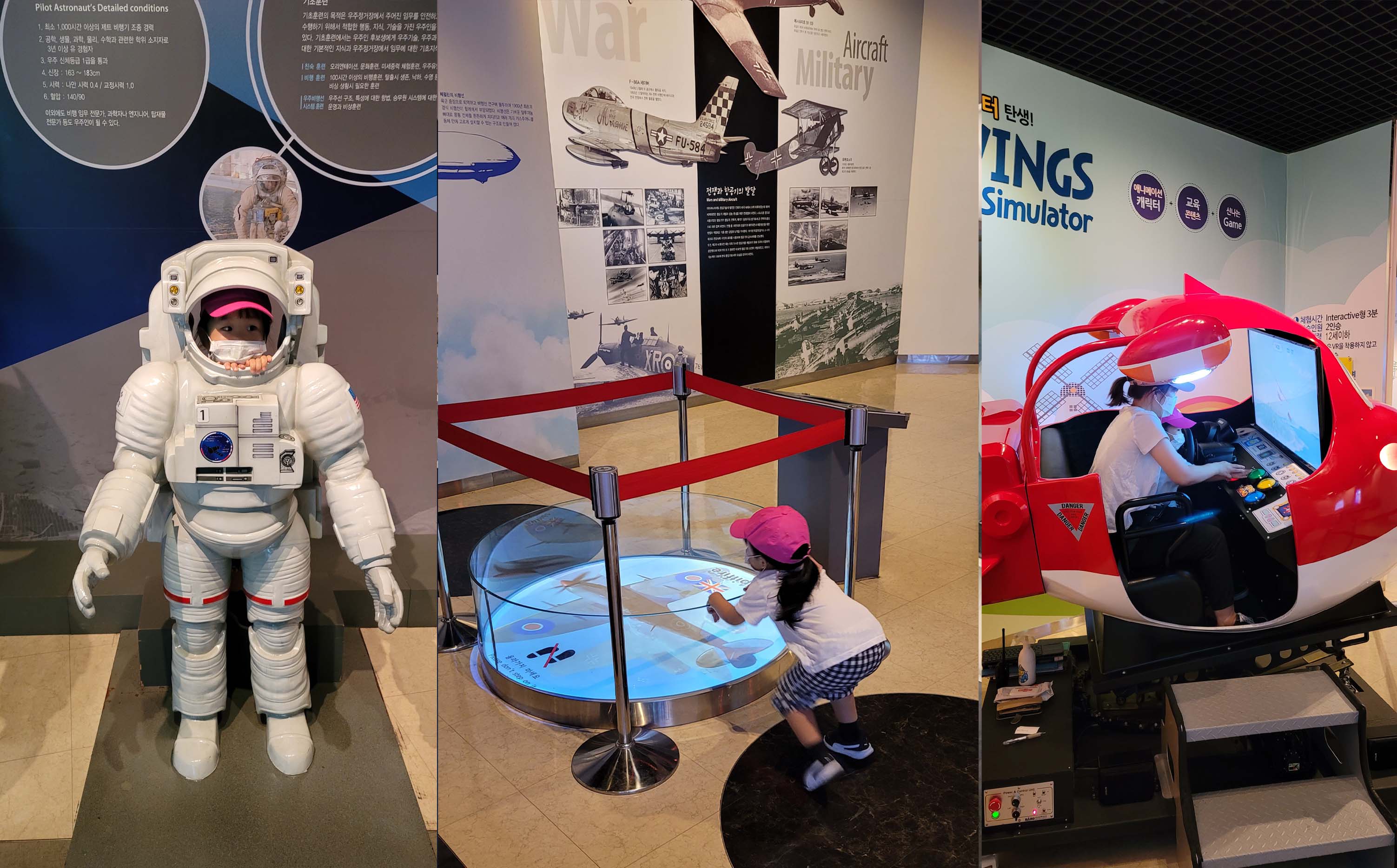 실내인 항공우주관은 세계항공발달사 및 각종 항공기 모형, 우주코너의 우주전시물등으로 어린이들의 체험공간으로 이루어져 있습니다.